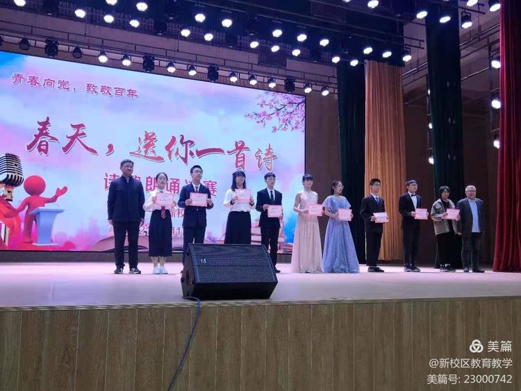 凤凰花开劲松迎,万紫千红醉春风。萃英学子展风貌,诗书文赋声朗朗。 为弘扬中华民族源远流长的传统文化,进一步丰富校园文化生活,陶冶同学们的情操,引导同学们朗诵诗文、致敬经典,彰显青春力量,致敬百年伟业,泰安一中新校区举办了“春天,送你一首诗”朗诵大赛。 ![]() 大赛开幕,首先由泰安一中党委委员、副校长赵亮致辞。 赵校长指出了本次大赛的目的和意义,并向同学们提出期望,希望大家积极参与到精彩纷呈的活动中去,让诵读经典成为日常学习的一部分,让书香溢满我们的校园,让经典滋润我们的心田,最后赵校长以一首激情澎湃的原创诗歌为大赛开场,点燃了全场的气氛! ![]() 开幕词后,主持人宣布,泰安一中“春天,送你一首诗”诗朗诵大赛,正式开幕,选手们按照赛前的抽签顺序,依次登场。 ![]() ![]() ![]() ![]() ![]() ![]() 各位参赛选手语言慷慨激昂、铿锵有力;情感充沛,满目深情。 比赛结束后,由王方圆老师对此次比赛做点评。王老师肯定了同学们的表现,称赞他们在此次比赛中表现出来的良好的精神面貌、高超的朗诵技巧,同时就发音技巧、身体语言等问题给同学们做出了指导。 比赛的最后,由学校领导向获奖的选手们现场颁奖。 ![]() ![]() 岁月很美,青春绽放,只要春天还在,我们永远不会彷徨。 既然目标是地平线,就要唱着春天的歌穿透云雾阻挡。 春光无限好,正是读书时。 春光无限好,莫负好时光。 雏凤振羽凌云志,博远自强沧海鸣。 祝福我们伟大的祖国繁荣昌盛; 祝福我们的人民幸福安康; 泰安一中新校区“春天,送你一首诗”朗诵比赛 圆满结束! ![]() ![]() 本次比赛由2020级部主办,由语文组承办,感谢幕后辛苦付出的所有老师! ![]()