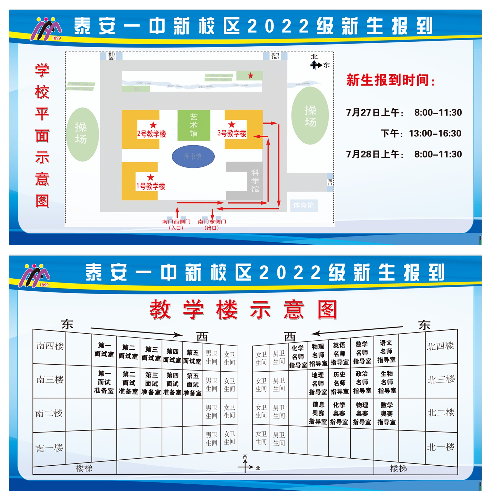 泰安一中新校区2022级新生报到示意图