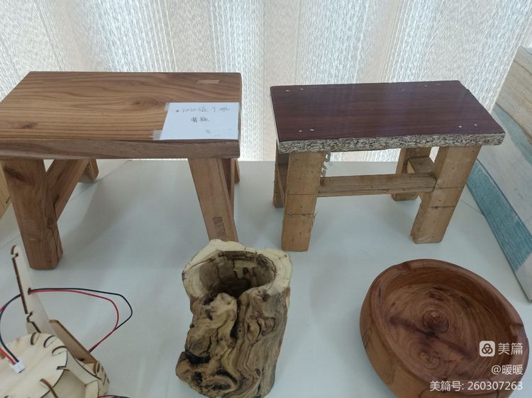 木制板凳和别致的笔筒