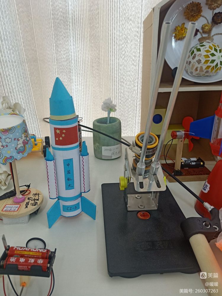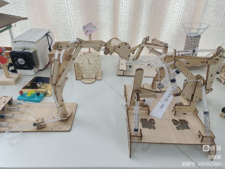 通用技术创意设计现场展示的学生作品各式各样,有投球器、火箭模型、创意台灯、纸板吉他、液压挖掘机、木制板凳、笔筒,、温控排风警示系统……可谓是“八仙过海,各显神通”,这些创意无限的精美作品融入了同学们天马行空的想象力和创作力。这是一场充满“奇思妙想”的创意设计展,也是一场精美绝伦的“艺术场”,不同的创意在这里交织出火花。